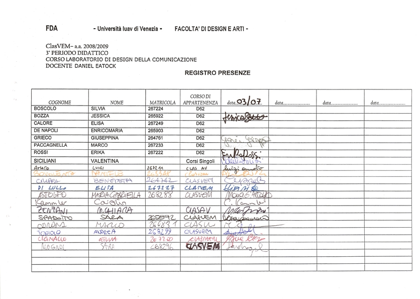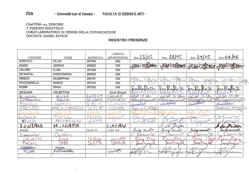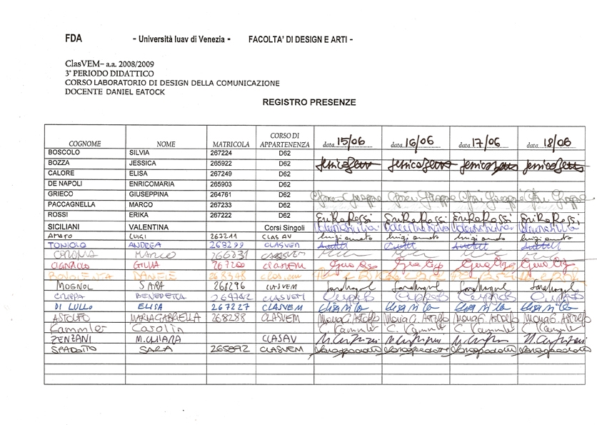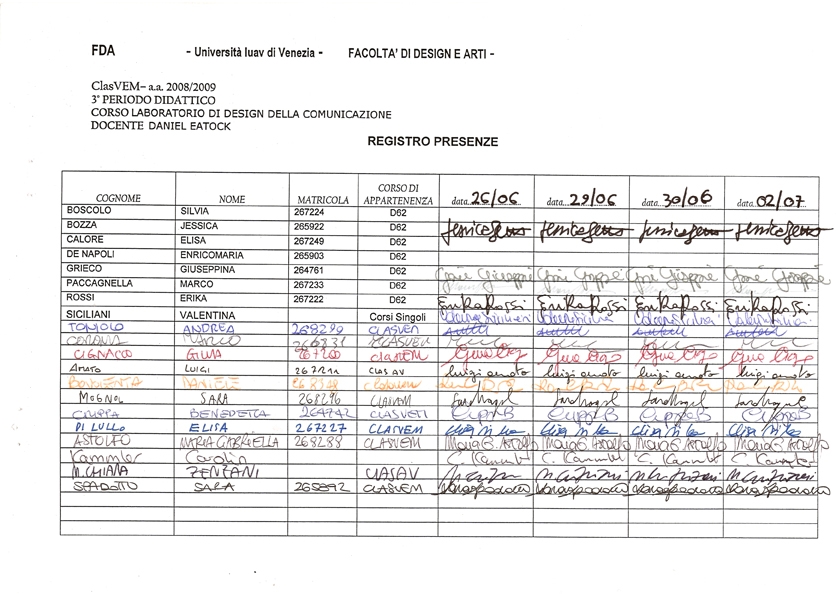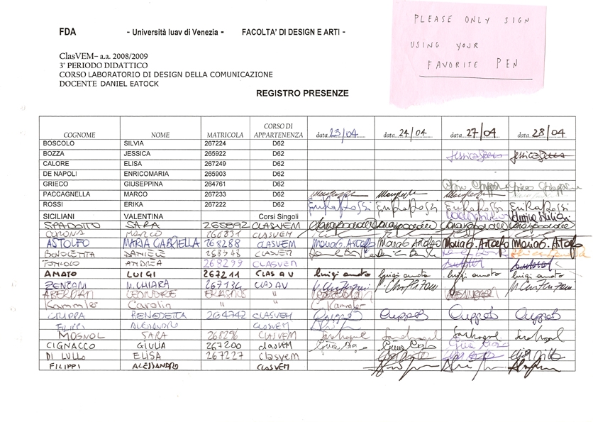 All workshop participants are asked to choose a personal pen by criteria of colour, nib, cost, availability, comfort etc. Please use only one pen for the complete duration of the workshop, to sign the mandatory workshop register, make all personal notes, doodles, drawings, signs etc. If your pen runs out of ink, replace with the same model and recycle the old one.